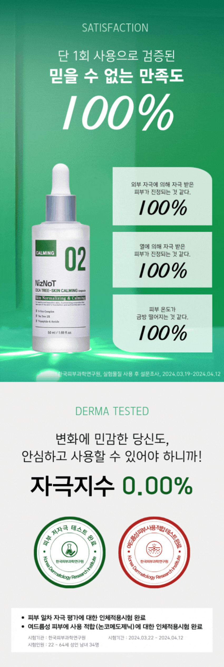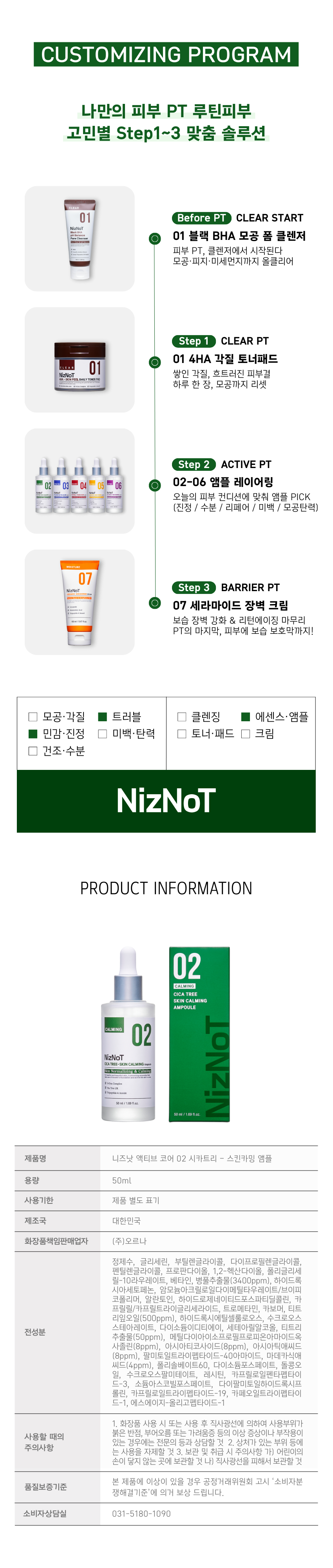 외부환경으로부터 민감해진 피부를 진정시켜주고 피부 장벽을 개선시켜, 피부속부터 건강하고 매끈하게 완성시키는 니즈낫 시카 진정 앰플