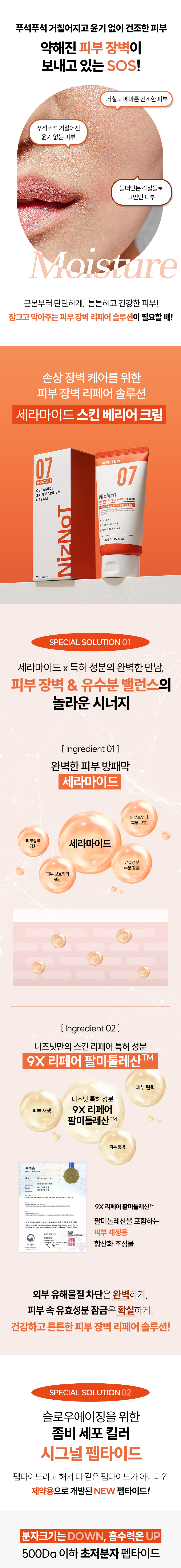 외부 환경으로부터 민감해진 피부를 진정 시켜주고 촉촉한 보습력과 탄탄한 피부 장벽을 완성시켜 건강한 피부 환경을 위한 유수분 밀도를 균형있게 채워주는 니즈낫 보습 장벽 크림